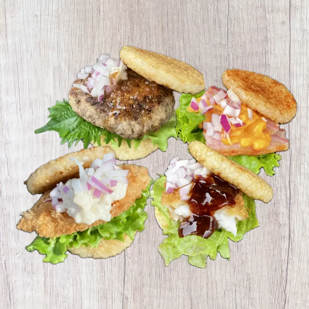 豊富なメニューに合わせタレ、ソースにもこだわったライスバーガーをご賞味ください